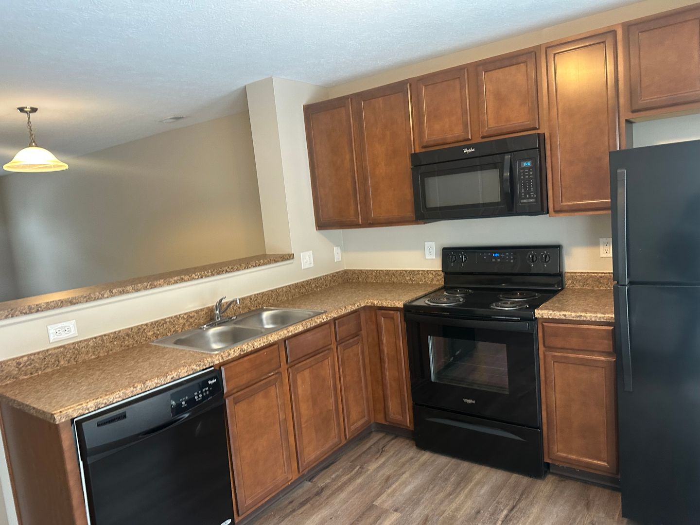Welcome home to these beautiful 2-bedroom, 1.5-bath townhomes offering 1,032 sq. ft. of comfortable living space. Enjoy modern finishes and thoughtful design throughout from the open-concept kitchen featuring all black Whirlpool appliances (including microwave), Wilsonart laminate countertops with a granite-like look, and Aristokraft Newberry Birch cabinetry, to the breakfast bar perfect for casual dining.