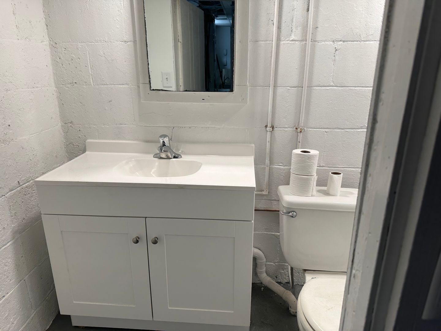 The home includes a newer set up of washer and dryer and utility sink.
